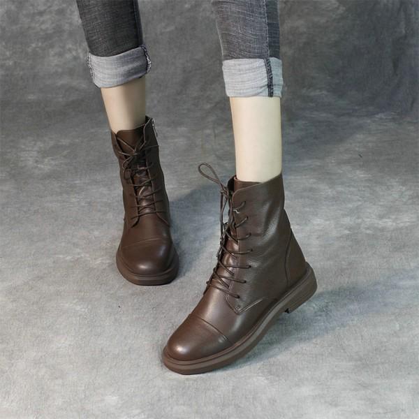 本革 ショートブーツ レディース ローヒール 歩きやすい レースアップブーツ 編み上げブーツ ショート丈 クレープソール 天然皮革 サイドファスナー 履きやすい 歩きやすい おしゃれ 小さいサイズ 大きいサイズ ブラウン ブラック 黒 Fe 12 送料無料 日本代購流行生活