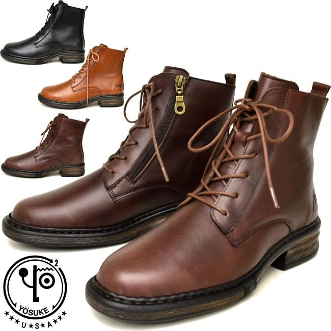 P10倍 レースアップブーツ レディース 本革 ショート Yosuke ヨースケ 靴 返品無料対応 あす楽 予約 は3営業日内に発送 ワーク